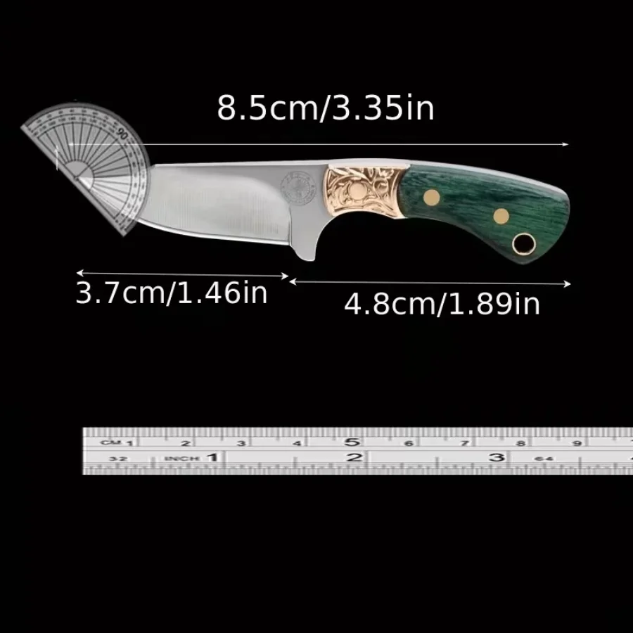 Mini Folding Knife Keychain Portable Pocket Knife Green Wood Handle Brass Decor
